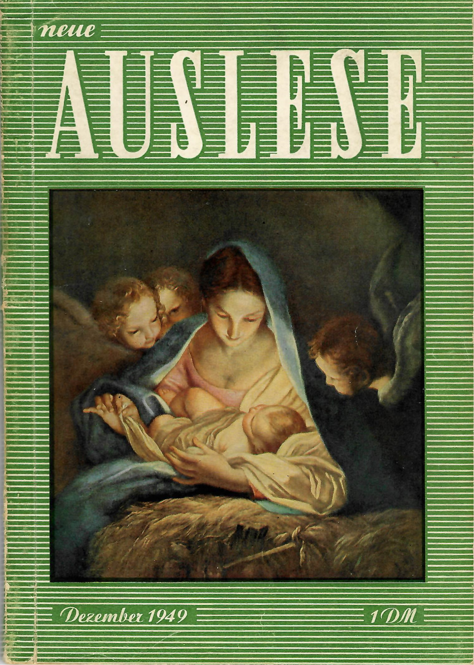 While a key component of Karussell (here pictured: the issue from December 1946) has always been the magazine’s visual design, the cover image was a late addition to Neue Auslese (here pictured: the issue from December 1949), a magazine that went through several redesigns in its later years. Since both magazines chose angels as their cover models, we thought they could be our messengers too: