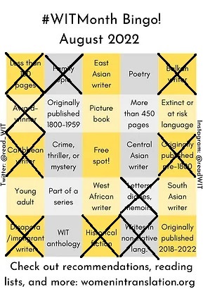 September and October have passed us by but we are still finding more ‘Women in Translation’ in our corpus, so we are continuing our series and checking off more Bingo squares: